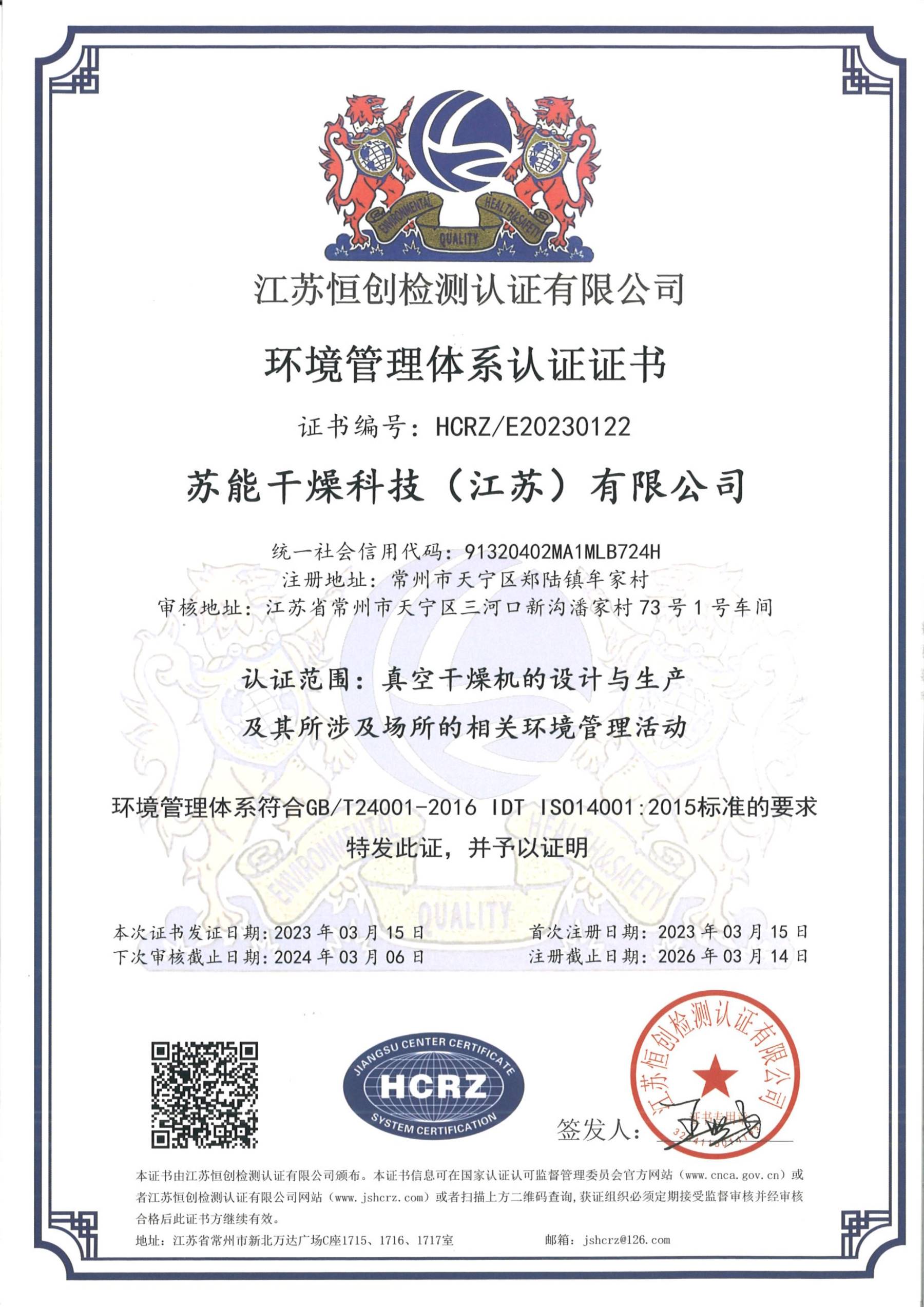 环境管理体系证书