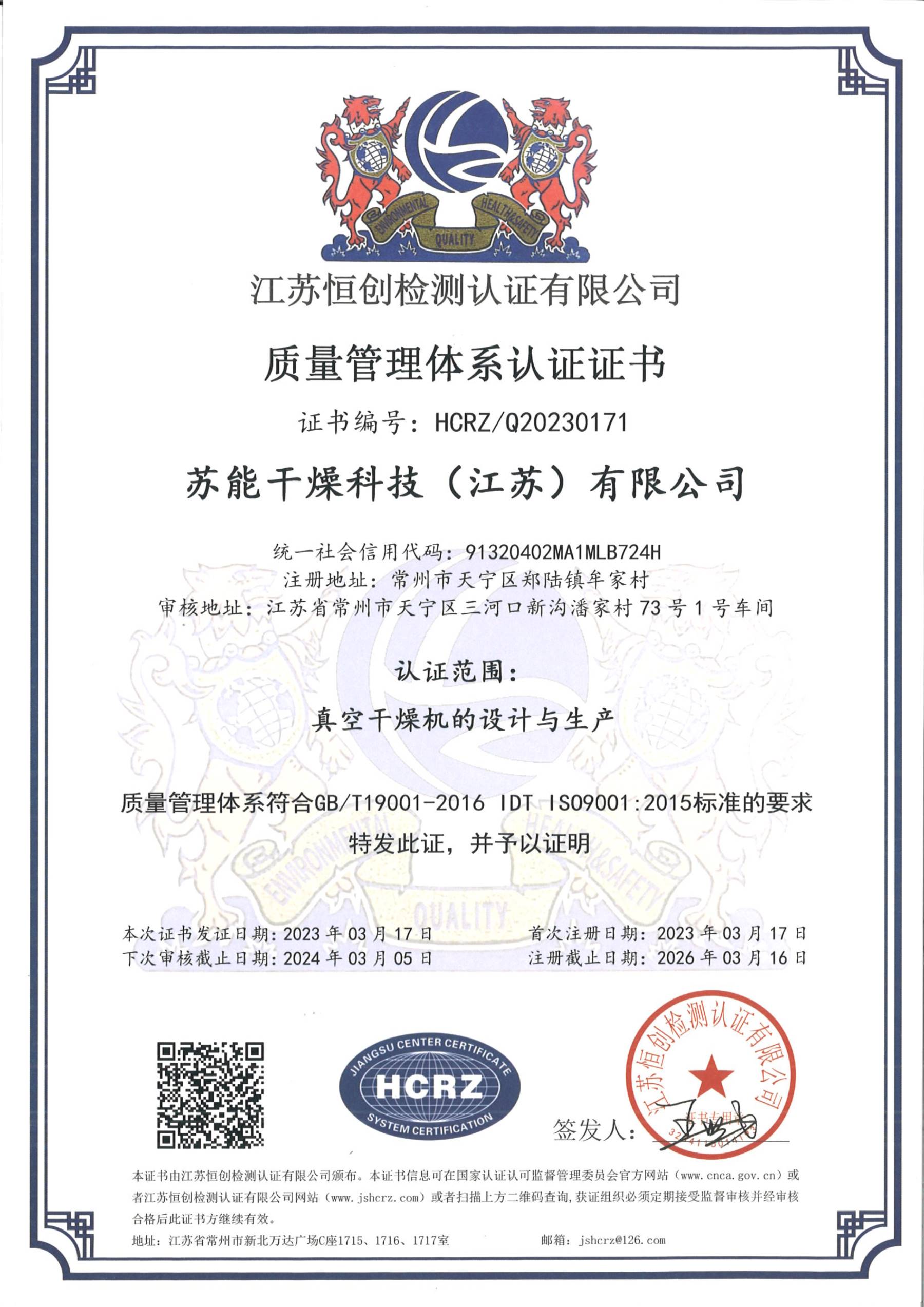 质量管理体系证书