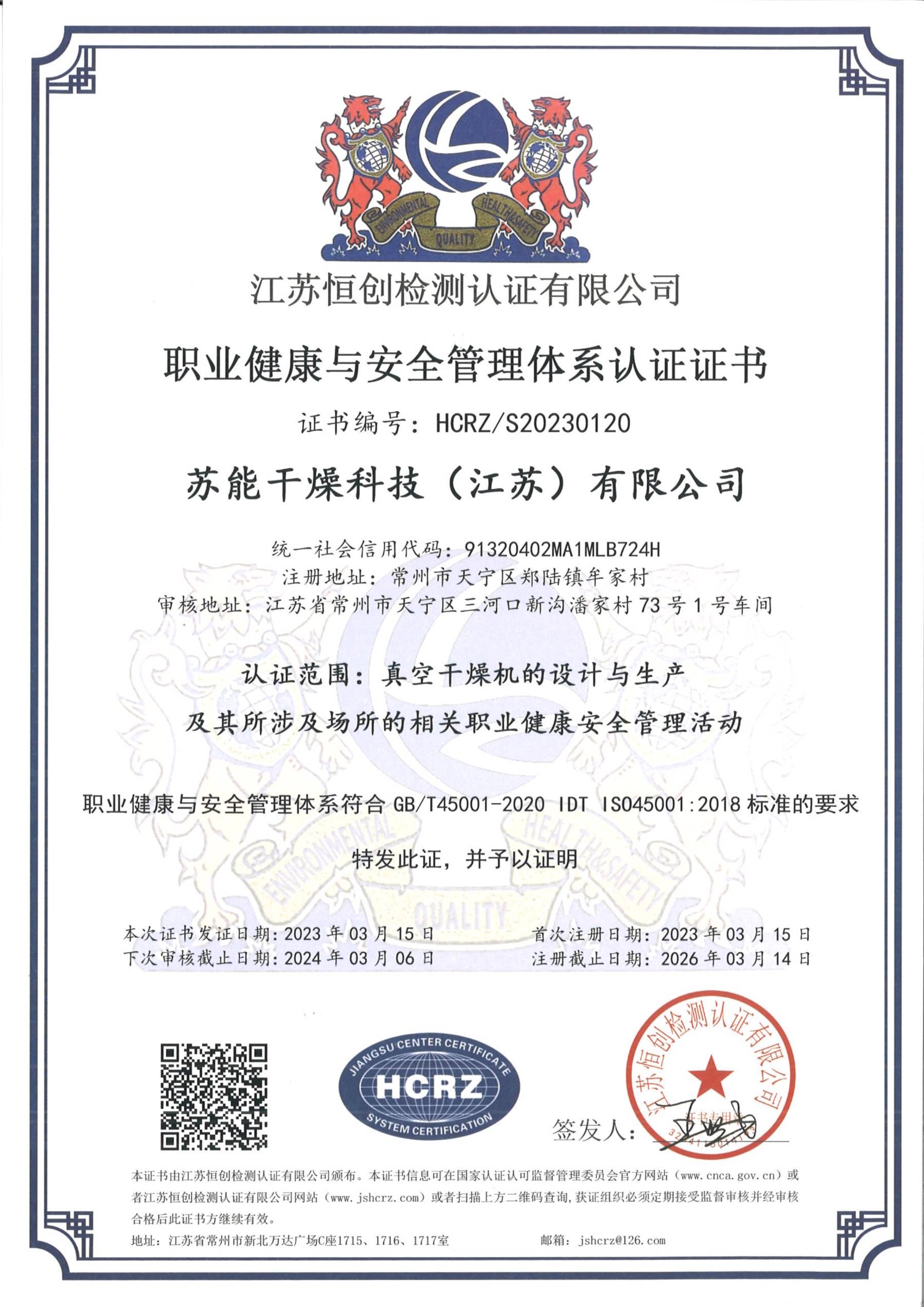 职业健康与安全证书